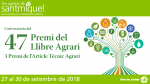 Fira de Lleida ha convocat el 47è Premi del Llibre Agrari i el 3r Premi de l’Article Tècnic Agrari, guardons organitzats en el marc de la Fira Agrària de Sant Miquel i del saló Eurofruit. Ambdues estan destinades a distingir les obres o els articles publicats recentment en format imprès o digital que suposin una aportació remarcable dins el sector agroalimentari o l’àmbit rural i estimular la creació de nous treballs de caràcter científic, tècnic o divulgatiu que permetin incrementar la literatura destinada als sectors esmentats. La 64a edició de la Fira Agrària de Sant Miquel i la 33a edició del saló Eurofruit tindran lloc del 27 al 30 de setembre.